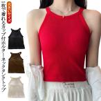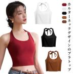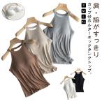 重ね着 タンクトップ リブ カップ付き ホルターネック トップス ブラトップ ブラカップ キャミソール ホルター ホルターネックブラ カジュアル リブ
