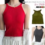 キャミソール タンクトップ ホルター ブラトップ ニット ホルターネック カップ付き トップス ノースリーブ キャミ リブ カジュアル リブ生地 ホル