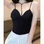 キャミソール ソリッドカラー Vネック カップ付き ホルター キャミソール