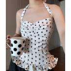 送料無料 キャミソール レディース 女性 トップス ビスチェ ホルターネック リブニット ノースリーブ オフショルダー フロントクロス クロップ 無地 単色 おしゃれ