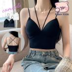 キャミソール ソリッドカラー Vネック カップ付き ホルター キャミソール