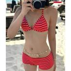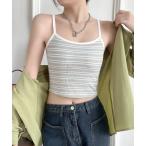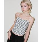 キャミソール ボーダー柄 クロップド丈 カップイン 細ストラップ キャミソール
