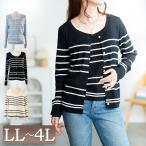 大きいサイズ レディース カーディガン キャミソール アンサンブル セット ボーダー リブニット 通勤 秋コーデ 冬 春 LL 2L 3L 4L ブラック ホワイト ブルー