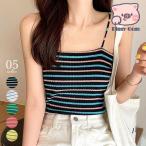 キャミソール ショート丈 リブ ニット ボーダー キャミソール