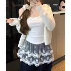 【SALE/60%OFF】Samansa Mos2 裾レイヤード風レースキャミ サマンサモスモス トップス キャミソール グレー ベージュ カーキグリーン ブルー