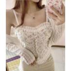 キャミソール 花柄レースシャーリングキャミソール