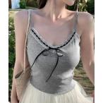 キャミソール キャミソール レースアップ リブニット夏