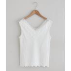 キャミソール 「春夏マストアイテム」テレコVレースタンク