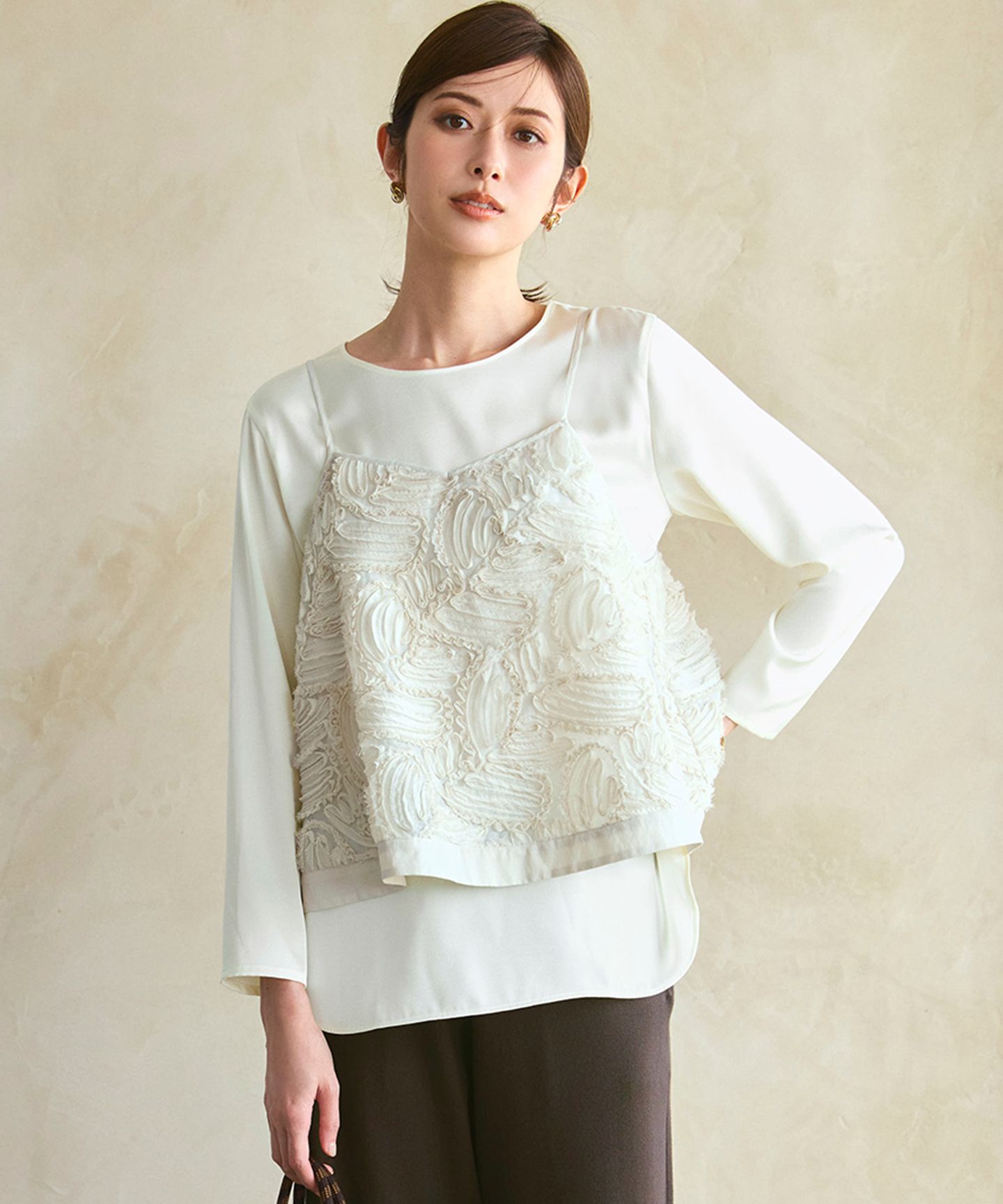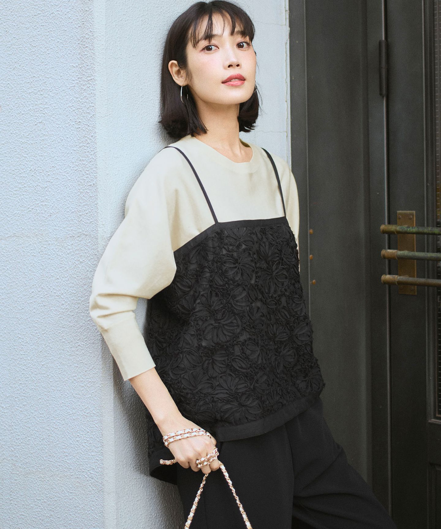 23区(ニジュウサンク)/【好評につき新色追加/汗じみ防止】エンブロイダリージャージー レースキャミソール付き カットソー