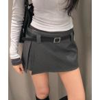 スカート ベルト付きドット柄サイドスリットミニキュロットスカート