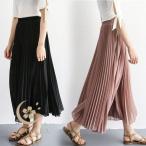 キュロットスカート ワイドパンツ ロングパンツ サマー 薄手 カジュアル シフォンパンツ プリーツ ハイウエスト ウエストゴム デート 通勤 通学 快適 きれいめ