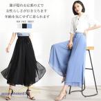 ワイドパンツ レディース ロング丈 キュロットスカート ワイドズボン ボトムス ハイウエスト 体型カバー おしゃれ カジュアル 通勤OL 旅行 涼しいレション