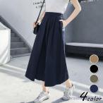 綿 麻 キュロットスカート パンツ スカート レディース スカーチョ ワイドパンツ 春 夏 ロングスカート 九分丈 9分丈 薄手 ボトムス レイヤード