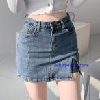 ミニ丈 キュロットスカート レディース デニム スリット入り ショート丈 スカート ハイウエスト タイトスカート 着やせ