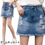 インナーパンツ付き デニムスカート レディース キュロットスカート Aライン ミニスカート フレ