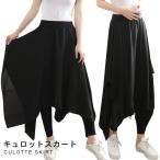 キュロットスカート ロング丈 重ね着風 レディース キュロットパンツ ボトムス ドレープ パンツ ハイウエスト ダンスウエア 大きサイズ 春 夏 秋