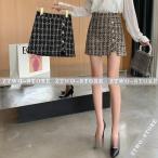 キュロットスカート アシンメトリー 真珠 チェック柄 ミニスカート レディース 厚手 体型カバー 2色 ハイウエスト Aラインスカート 春秋冬 ショートパンツ