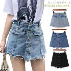 キュロットスカート デニムスカート レディース ショートパンツ フリンジ付き 夏 デニムパンツ おしゃれ ハイウエスト ハーフパンツ 偽二
