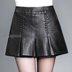 レザーパンツ キュロットスカート風 ショートパンツ レディーズ PU レザー短パン ホットパンツ ショーパン 革パン 美脚シルエット 秋冬新作