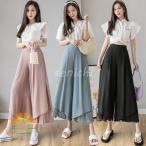 ワイドパンツ レディース 九分丈ワイドパンツ シフォン キュロットスカート プリーツ 春夏 ズボン 黒ゆったり ハイウエスト ボトムス 40代 オシャレ 着痩せ