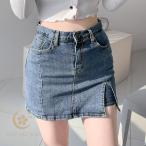 ミニ丈 キュロットスカート レディース デニム スリット入り ショート丈 スカート ハイウエスト タイトスカート 着やせ