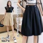 楽チン ワイドパンツ パンツ パンツ レディース スカートパンツ ボトムス スカーチョ 五分丈パンツ フレアパンツ ハイウエスト 体型カバー ショート