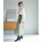 チェック柄レディースシャツ腰巻き風スカートキュロットスカート裏地なし薄い膝丈スカートフレアハイウエスト5色
