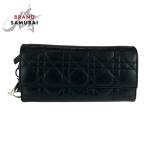 Christian Dior クリスチャンディオール マイディオールグライシンウォレット カナージュ ラムスキン レザー ブラック 【中古】