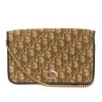 クリスチャンディオール ヴィンテージ トロッター チェーンショルダーバッグ ジャガード 斜め掛け ベージュ 鞄 ☆AA★ レディース