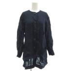 クリスチャンディオール Christian Dior ヴィンテージ リネンチュニック シャツ 長袖 11 紺 ネイビー /GV ■GY06 レディース