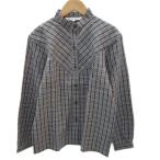 クリスチャンディオール Christian Dior カジュアルシャツ L ブルーグレー チェック柄 バンドカラー 長袖 /SM1 ■GY61 レディース