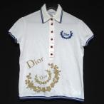 美品 Christian Dior クリスチャンディオール ガリアーノ期 ロゴ刺繍 プリント 半袖 鹿の子 ポロシャツ I44サイズ ホワイト レディース 古着 中古