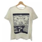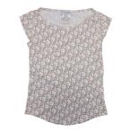 美品 Christian Dior クリスチャンディオール プリント コットン リネンブレンド 半袖 トリムTシャツ XSサイズ ホワイト×ベージュ レディース 古着 中古