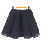 クリスチャンディオール Christian Dior ジャガードタックボリュームスカート 膝丈 フレア 36 紺 黒 /NR ■OS レディース