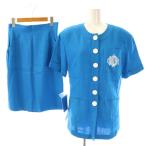 クリスチャンディオール ヴィンテージ マリン スーツ セットアップ ジャケット タイトスカート リネン混 11 ターコイズブルー