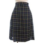 クリスチャンディオール Christian Dior スポーツ チェック プリーツ ラップスカート ひざ丈 ネイビー イエロー S ■ECT レディース