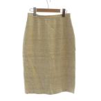 クリスチャンディオール Christian Dior タイトスカート ミドル ジップフライ ロゴ 絹 シルク 麻 リネン 36 S ベージュ ■GY18