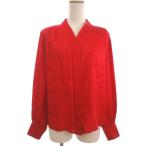 クリスチャンディオール Christian Dior 花柄 ジャガード ブラウス 長袖 シャツ シルク ヴィンテージ 赤 レッド M ■GY47 レディース