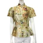 Christian Dior クリスチャン ディオール 半袖ブラウス シルク 42 グリーン系 イエロー系
