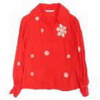 美品 Vintage Christian Dior クリスチャンディオール ノルディック柄 雪の結晶 シルク シャツ ブラウス L 赤 レディース 【中古】 /TNT