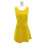 クリスチャンディオール Christian Dior ウール シルク デコルテ ノースリーブ ワンピース ひざ丈 38 黄 イエロー 7C21607A1106