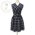 クリスチャンディオール CHRISTIAN DIOR ワンピース ウール ネイビー ホワイト ラップ オーバー ショートドレス フレア チェック