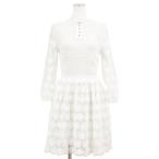【美品】Christian Dior クリスチャンディオール クロシェレースワンピース 38 レディース 花柄 コットンニット 長袖 付属有 アイボリー