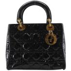 Dior クリスチャンディオール レディディオール ミディアム カナージュ ハンドバッグ パテントレザー 黒 レディース【I121626109】中古