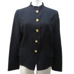 クリスチャンディオール Christian Dior ヴィンテージ スタンドカラージャケット 金ボタン ウール 9 約M 黒 ブラック IBO89 レディース