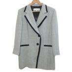 クリスチャンディオール ヴィンテージ テーラードジャケット シェブロンストライプ 総裏地 ウール 大きいサイズ 13 LL相当 白 黒 IBO88
