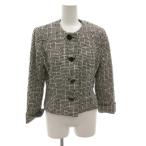 クリスチャンディオール Christian Dior ヴィンテージ ノーカラージャケット ツイード 短丈 千鳥格子 11 白 ホワイト 黒 ブラック /FF ■GY