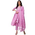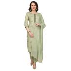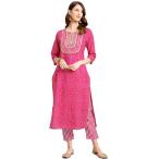 【並行輸入品】Bani レディース ネック刺繍プリントクルタデュパッタセット, グリーン, Small Bani Women Pure Cott