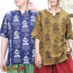 クルタ シャツ エスニック 夏 半袖 シャツ アジアン ファッション ユニセックス シャツ クルタ ! ガネーシャ & ヒンディー プリント プルオーバー 2025年春夏新作 エスニック ファッション トップス レディース メンズ ethnic ladies men's 体型カバー 30代 40代 50代 60代