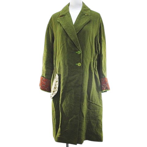 【中古】タクルタートル チェスターコート ロング丈 緑系 グリーン レース 切替 ビーズ ボタン ギャザー レディース 【ベクトル 古着】 250819